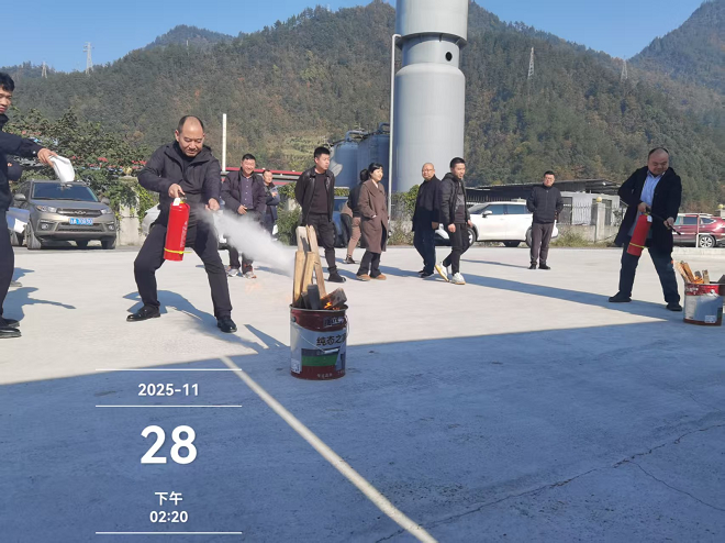 黔江社安消防专业教官加入举行宣媾和指导。。现场解说了职工听得懂、记得住的用火用电用气知识以及初期火灾扑救、火场逃生自救要领,,,随后举行了现场灭火演练,,,有用提升了全员消防意识应急处置惩罚能力。。